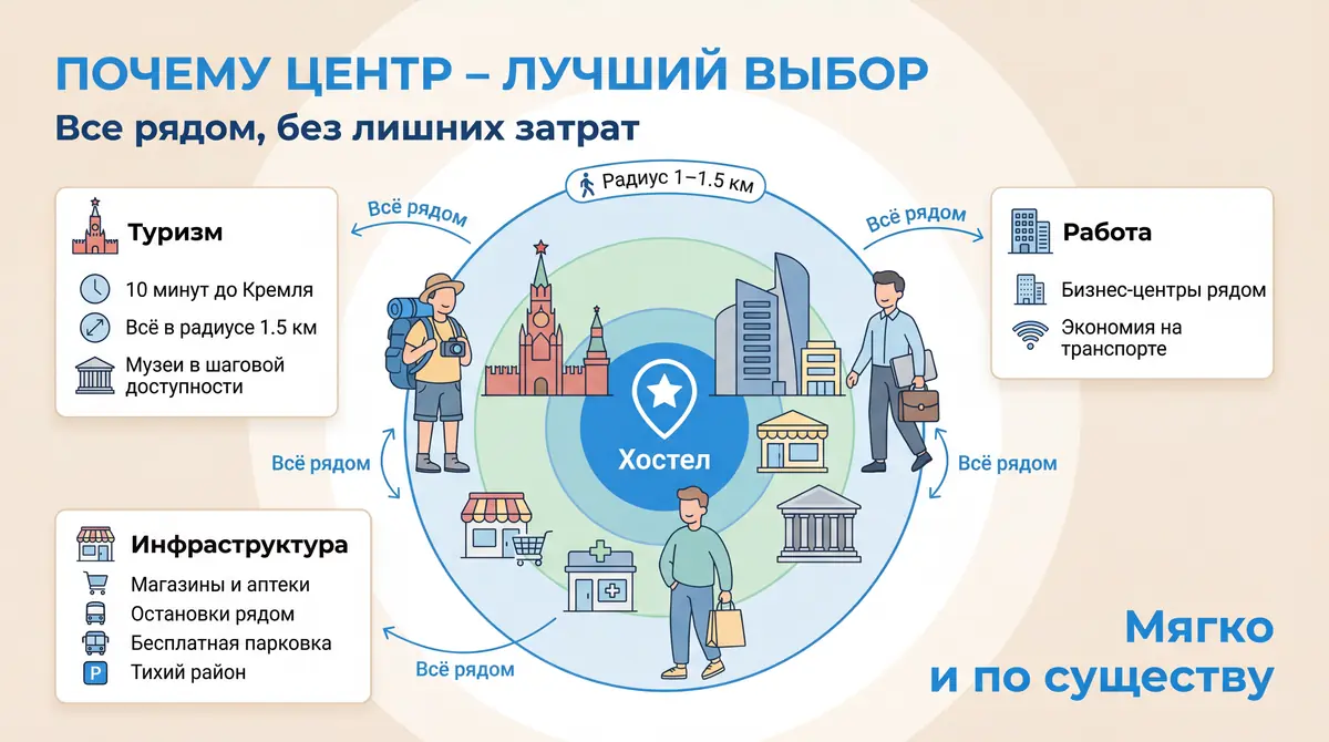 图拉中心区也是商务中心。市政府、法院、银行、办公楼——全在步行范围内。节省交通费用和时间。旅舍比市中心酒店便宜3-5倍,报销凭证完全相同:收据、验收单、发票。Wi-Fi可办公,厨房可节省餐饮费用。