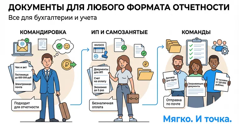 个体工商户和自由职业者经常因公务到图拉——谈判、展览、采购。我们提供可计入费用的收据和验收单。支持按个体工商户银行账户信息转账。方便记录收支账目。